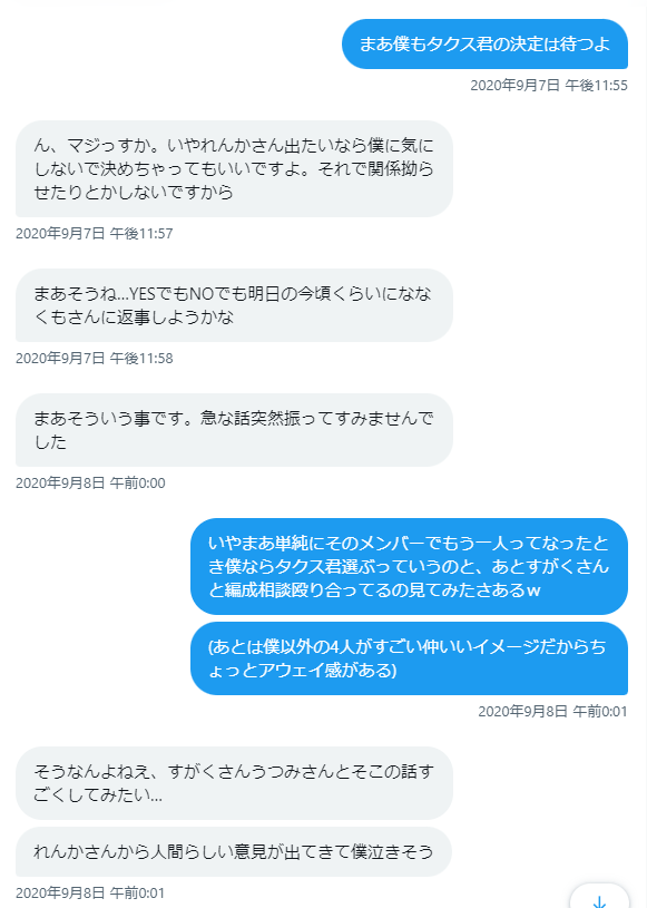そんな中で自分の編成を見て改善案をくれる、自分が出した改善案に対して言い返してくれる、そんな相手に会えたのです。