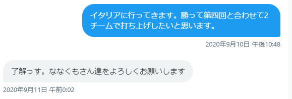 私「そうですね、ほんとは向こうで出るつもりだったんですけどイタリア人に誘われたのでこっちで参加することにしました。僕を引き留めなかったことを後悔させてやろうと思います」